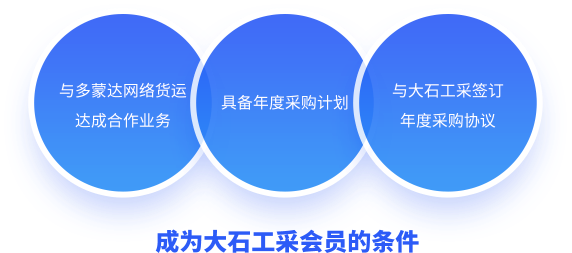 大石工采以多蒙德实业集团旗下企业为基础打造“多蒙达网络货运生态圈”,建立采买合作循环,满足所有采购需求。并针对会员企业为其提供优质的集中采购服务,以及专属采购管家,提供全方位高标准的专业服务。
